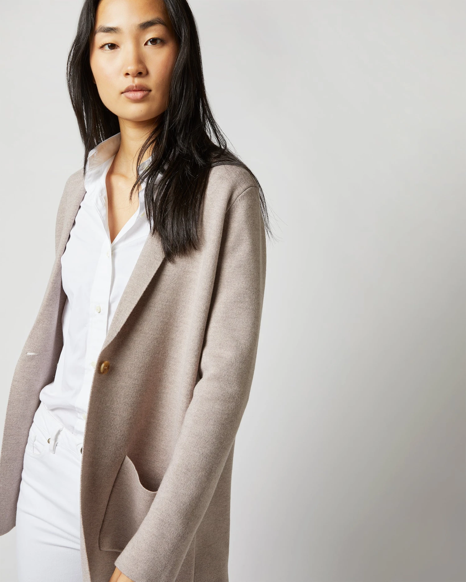 Cozy like a sweater, polished like a jacket — if you’re a longtime AM shopper, you know this is one of our favorite ways to do a blazer. This one is made with the same thoughtful details as the rest of our knitwear (full fashioning and milano stitching) plus front pockets and beautiful horn buttons.