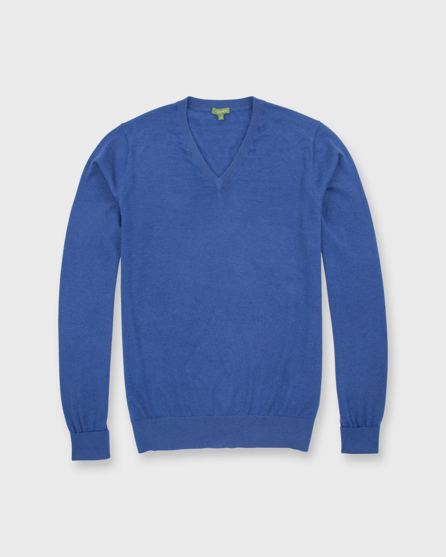 This shade of blue was dyed just for us. It’s rich and spirited and especially great with brown (although we’d never stop you from wearing it with a pair of blue jeans, either.) Our fine-gauge V-neck sweater is exactly what it sounds like, with a slim — but not tight — fit, a saddle shoulder, and ribbing at the neckline, hem, and turnback cuffs. We think the V is the perfect depth for showing off your shirt without dipping too low. The fine-gauge yarn makes it lighter-weight and, uh, finer than our classic cashmere sweaters, so it’s an excellent layering piece, especially in more moderate temperatures. It’s also our go-to for travel. And just like all of our cashmere, it’ll only get better (read: softer) with age.