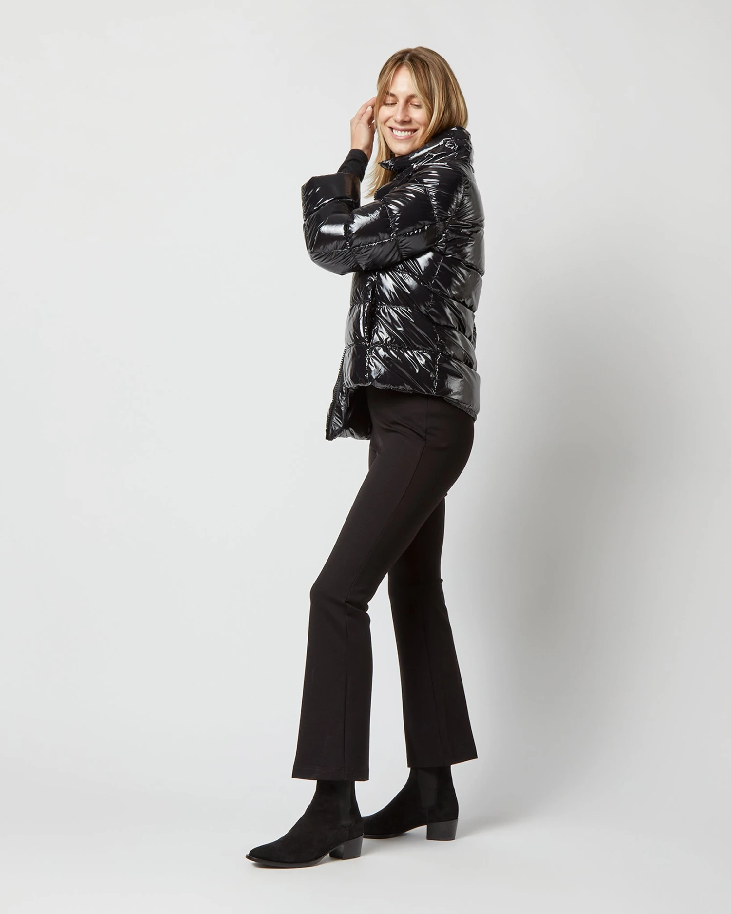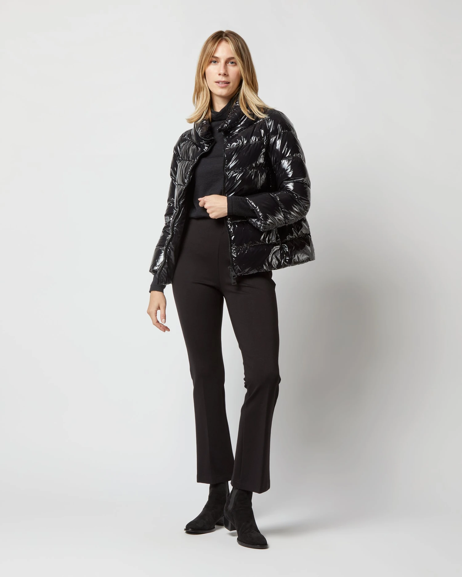 The name of cult Italian outerwear label Herno is pronounced ‘air-no,’ which feels appropriate — each of their pieces is featherlight and wildly soft. This is a glossy, A-line puffer with a stand-up collar and chic little built-in fingerless gloves for extra warmth.