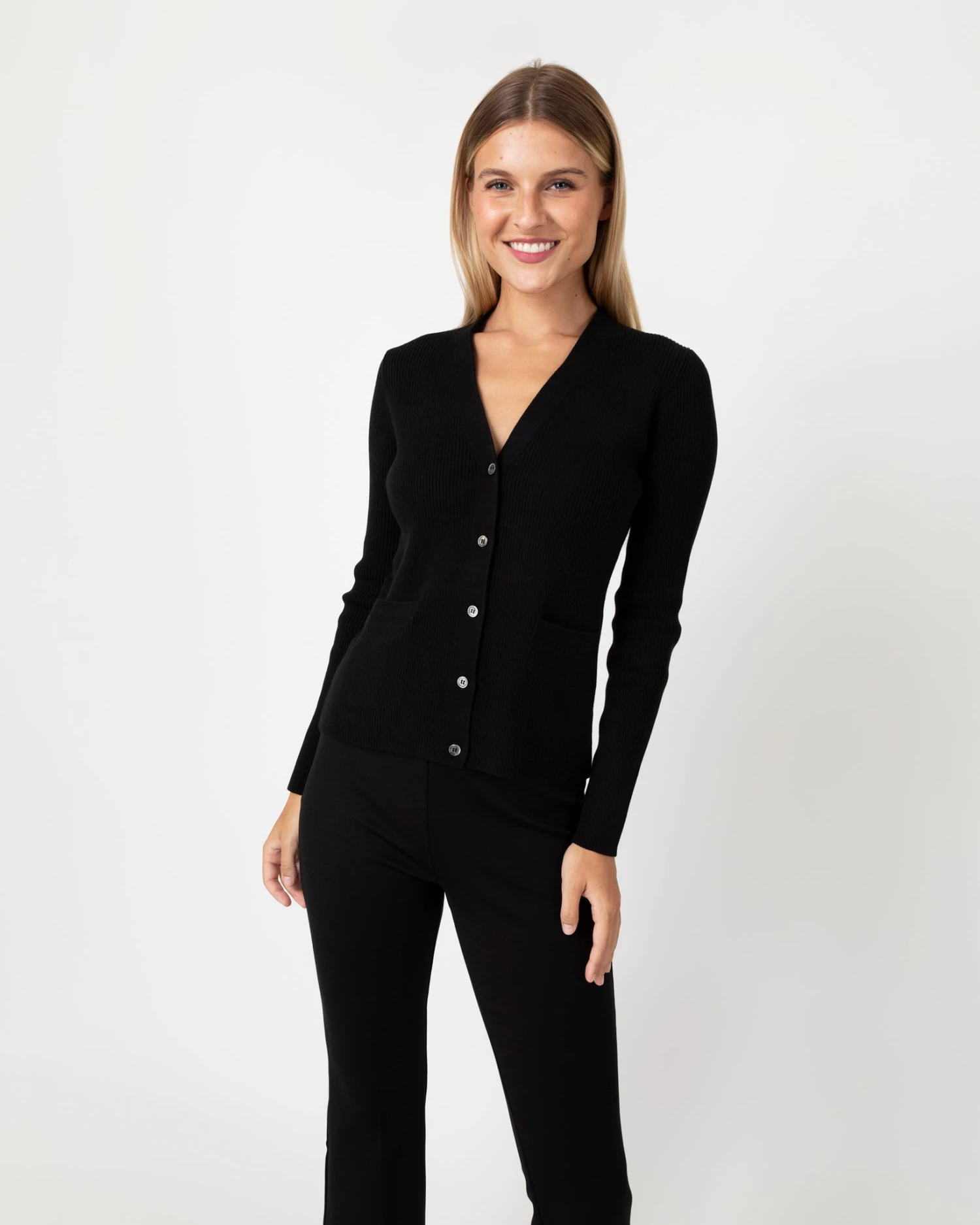 SKU: C2HVC 7130690846906 Category: Sweaters Tags: Ann Best Sellers, Badge-best-seller, NEST Nia Long-Sleeved Ribbed Cardigan, WebColor_Black Cotton/Silk Blend