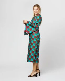 Flicker Dress In Sfere Grandi Verde Twill Silk