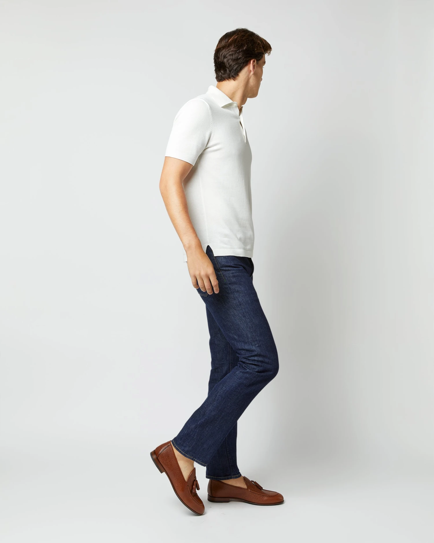 The Rally is a more refined, sweater-knit riff on a classic polo shirt. It’s made of this lightweight, dry high-twist cotton that almost feels cool to the touch. Wear it with a pair of dress trousers for a 1960s film star look… or a pair of shorts as a polished alternative to a typical polo or a sport shirt… or split the difference with jeans. It’s also great under a sport jacket. Note that the fit of the Rally is much slimmer than our standard polo, with a trimmer body and shorter banded sleeves.
