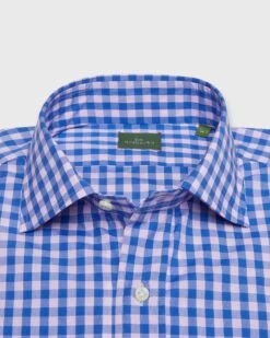 A pencil stripe is nearly as classic as it gets, and makes for a super-traditional dress shirt. This one’s got a modified spread collar with lightweight, fused interlining to lend some structure. (A little inside baseball: the collar point length is designed to sit in perfect harmony with the widths of our ties and our jacket lapels, all 8cm exactly.) Our Slim Fit has a trimmer body and sleeve than our Standard, plus a higher armhole and our usual long-enough-to-stay-tucked-in shirttail. It’s a good choice for guys with narrower shoulders and those who prefer a closer-to-the-body shape. Otherwise, the details are the same: single-needle stitching, 22 stitches/inch, flat-felled seams, and thick, 3.5mm Trocas shell buttons. And while they’re designed to look fantastic with a tie, all of our dress shirts can be opened up and worn more casually — in fact, on weekends, we wear them as sport shirts.